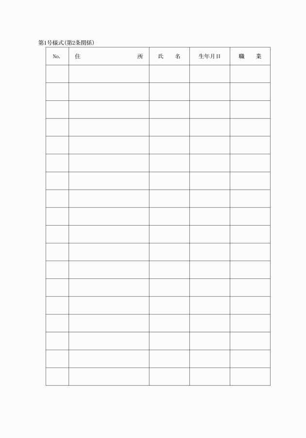 第2条 審理等を傍聴しようとする者は、公平委員会所定の別記第1号様式に必要事項を記入し、係員の指示に従い傍聴席に着かなければならない。